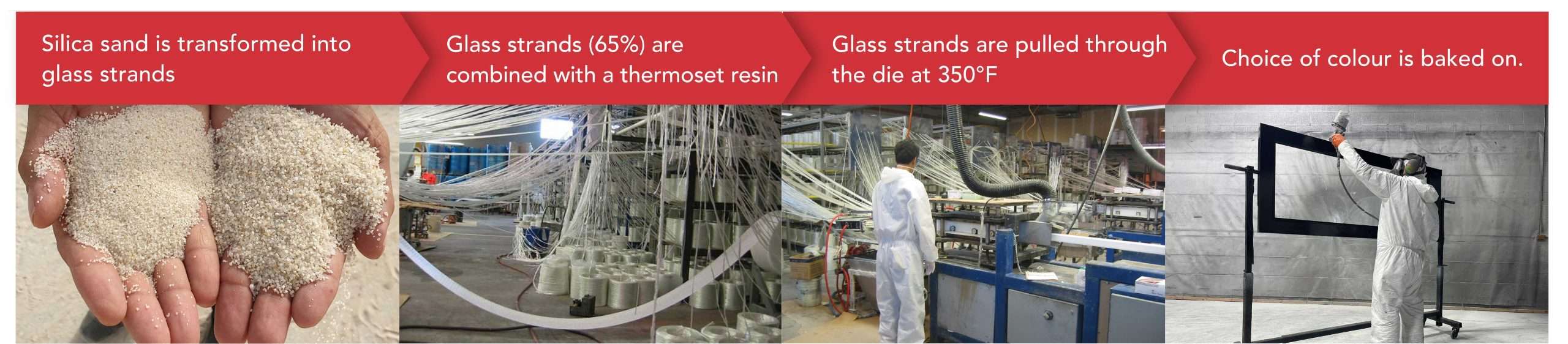 Crafted from a blend of ultra-strong glass strands and glass matting, fiberglass offers unmatched resilience. The wrapping of glass matting around the glass strands helps distribute impact across the frame, mitigating surface damage. And in the rare event of surface damage, fiberglass can be easily repaired and repainted, ensuring longevity and continued aesthetic appeal.